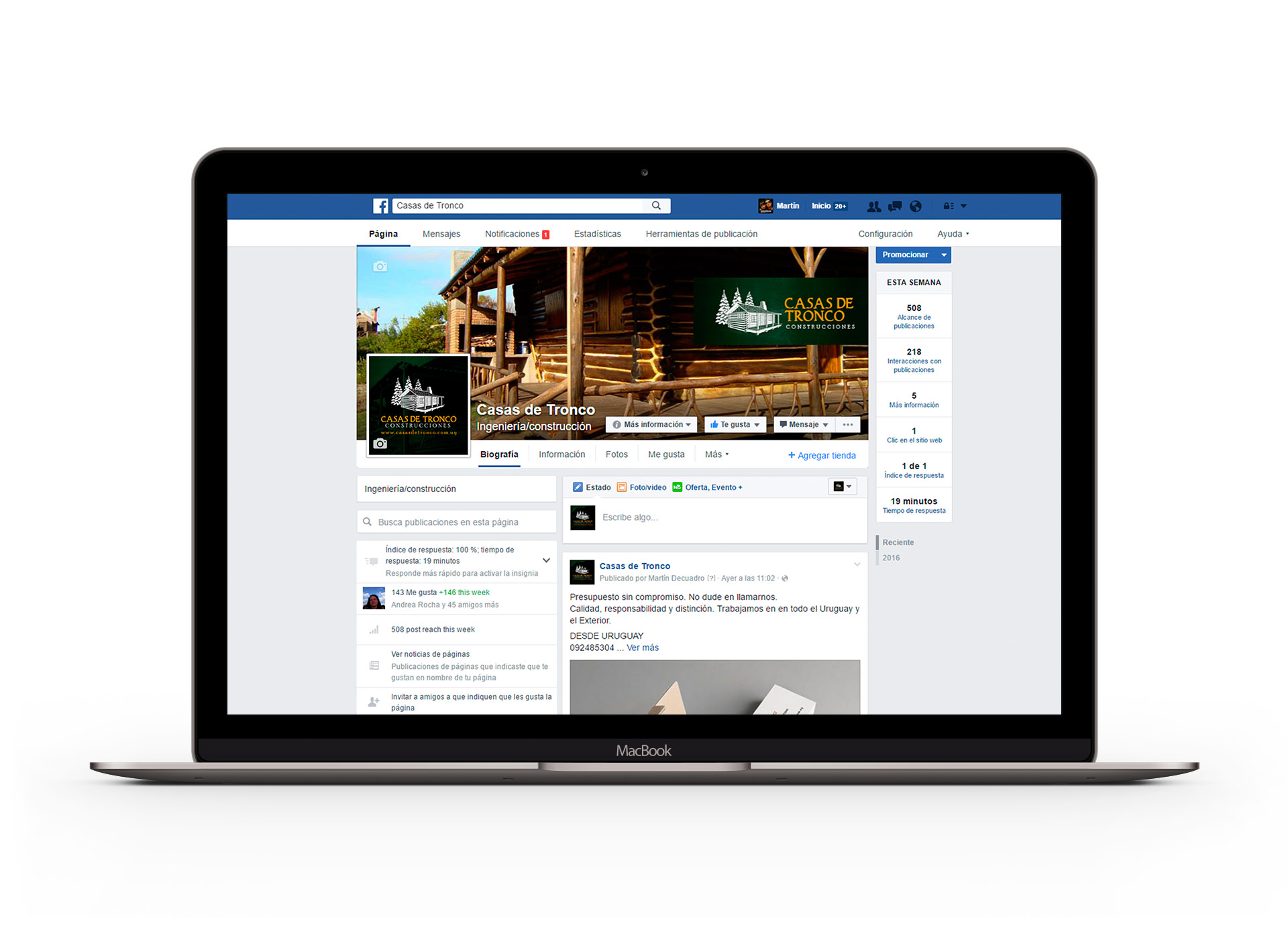 En esta oportunidad diseñamos la identidad de Casas de Tronco. Diseñamos sus tarjetas personales, desarrollamos su fanpage y su sitio web.