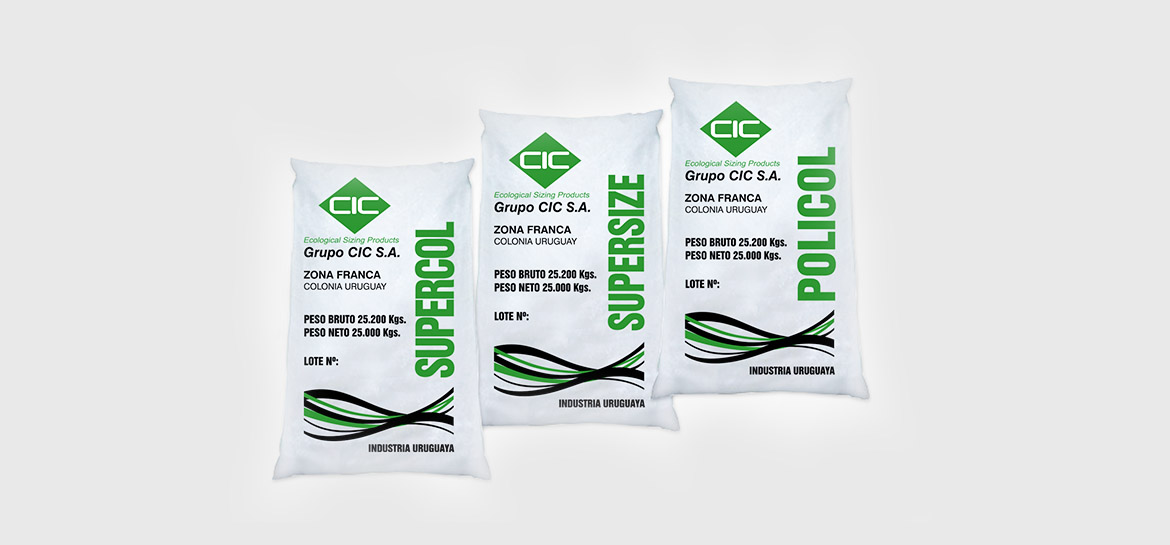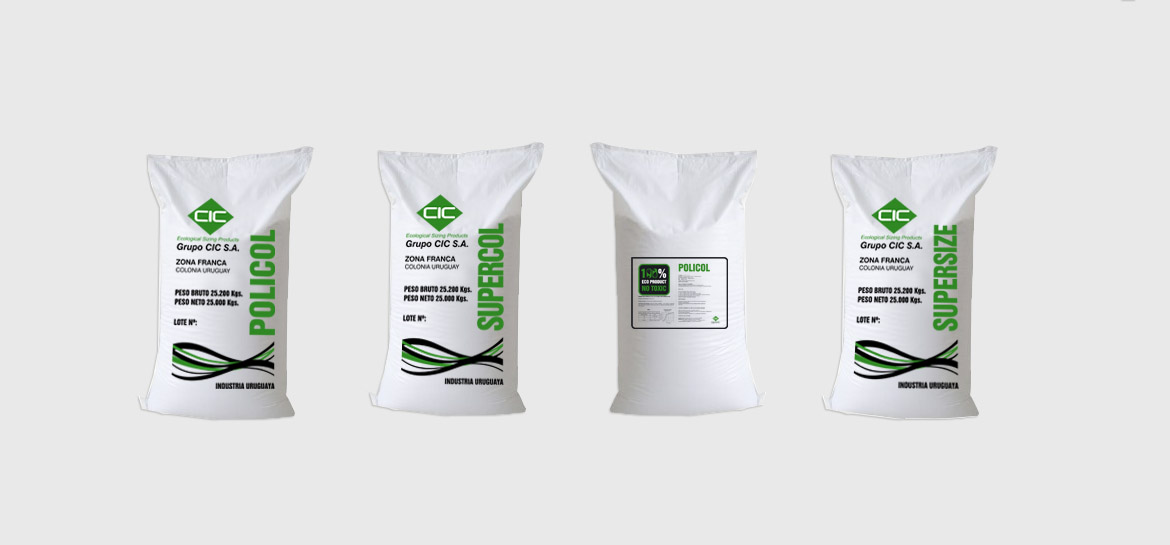 Diseñamos el packaging para las bolsas de exportación de 25KG Y 2.5KG de los productos POLICOL, SUPERCOL Y SUPERSIZE.