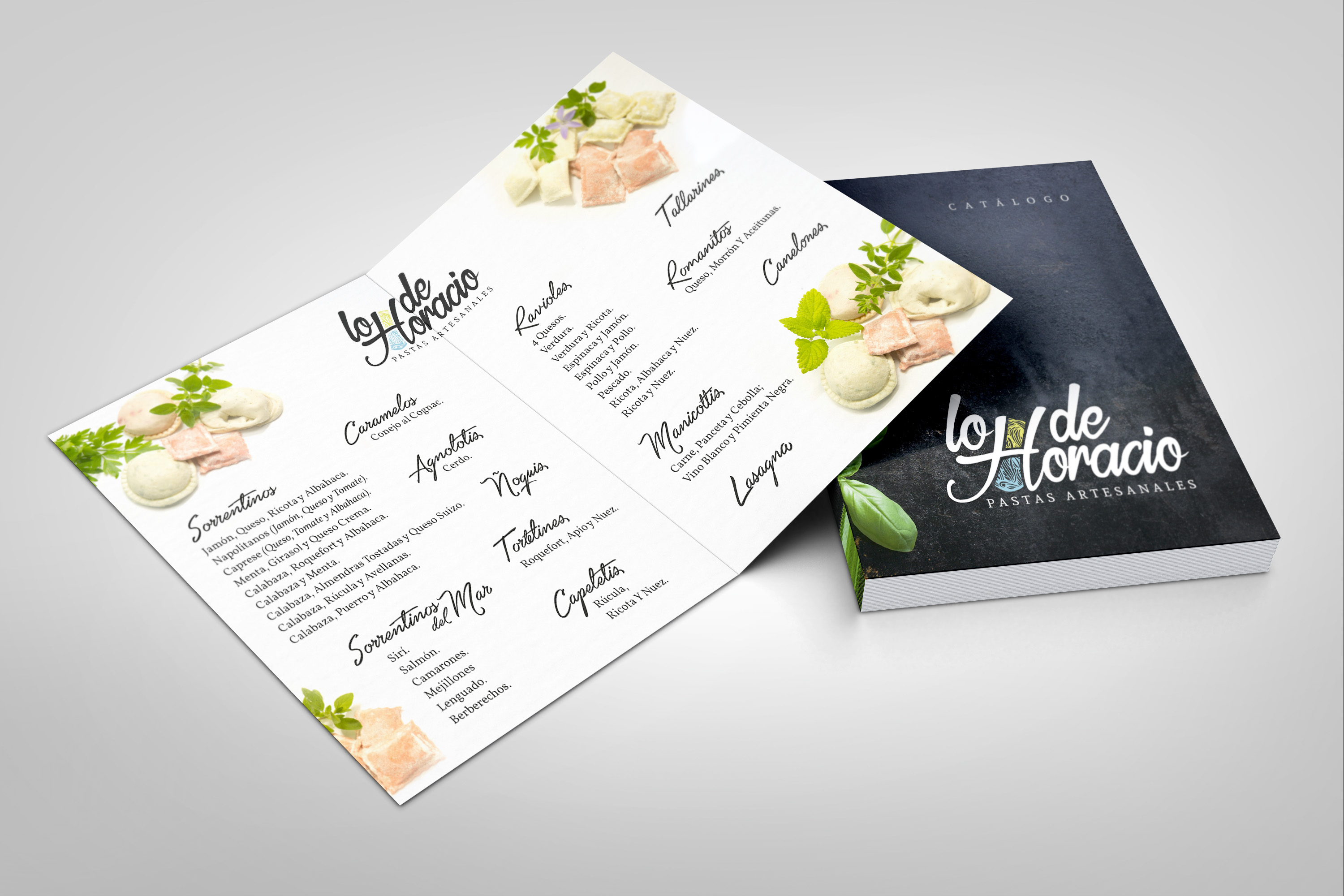 Realizamos la producción fotográfica de las pastas artesanales. Diseñamos una carta de menú y un catálogo de pastas.