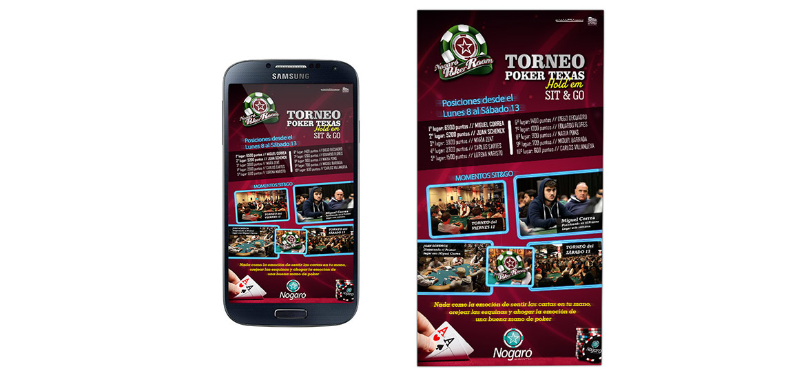 CAMPAÑA EXPERIMENTAL. Tomamos una campaña existente y desarrollamos una nueva estrategia de comunicación. Diseñamos el logo de Nogaró Poker Room y todos los materiales gráficos y digitales nuevos.